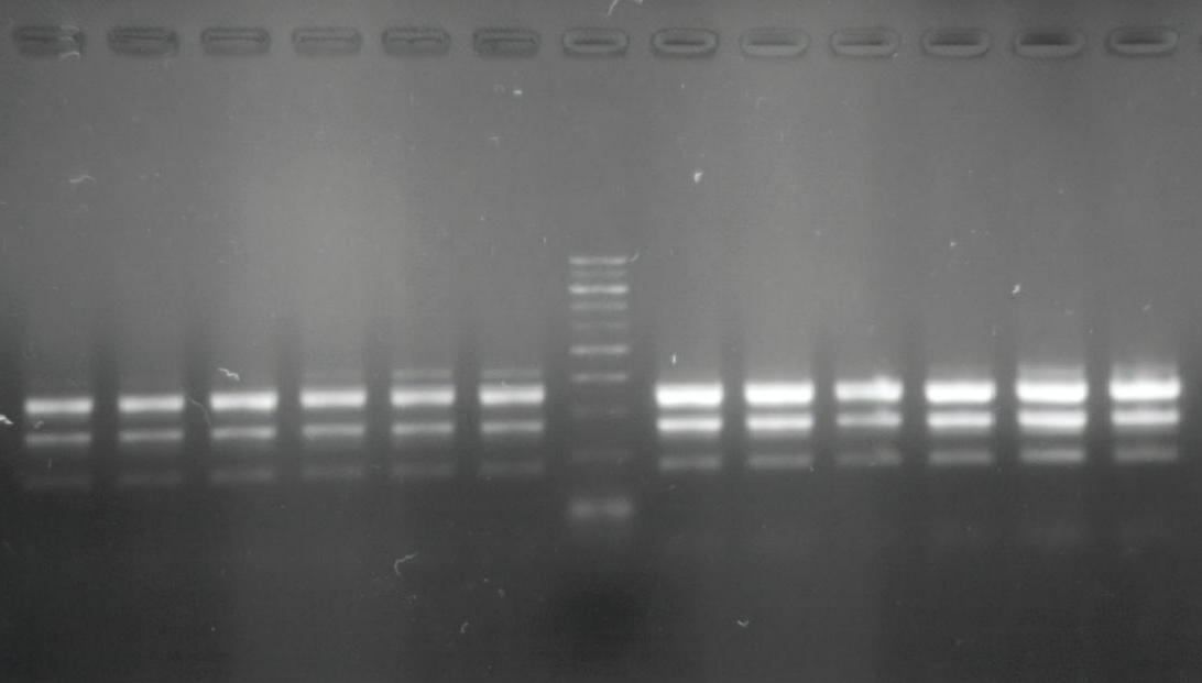 Electroforesis en gel de agarosa de fragmentos del ADN de P. cinnamomi amplificados por PCR.